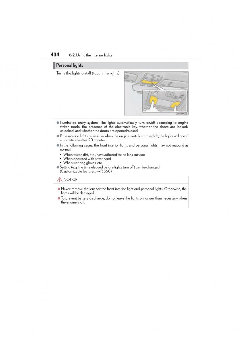 434 6-2. Using the interior lights