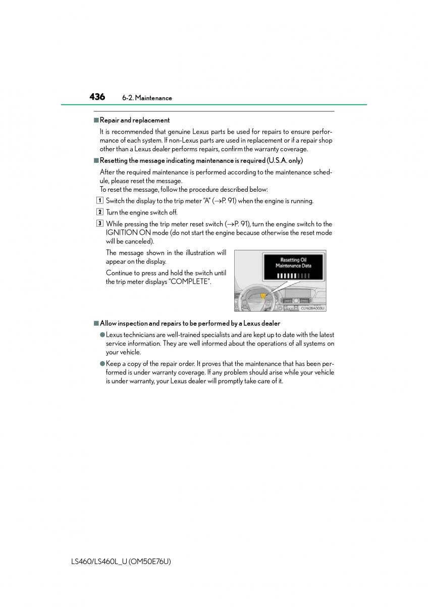 ■Resetting the message indicating maintenance is required (U.S.A. only)