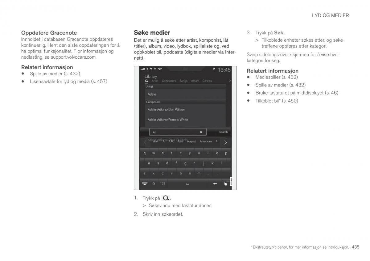 * Ekstrautstyr/tilbehør, for mer informasjon se Introduksjon. 435