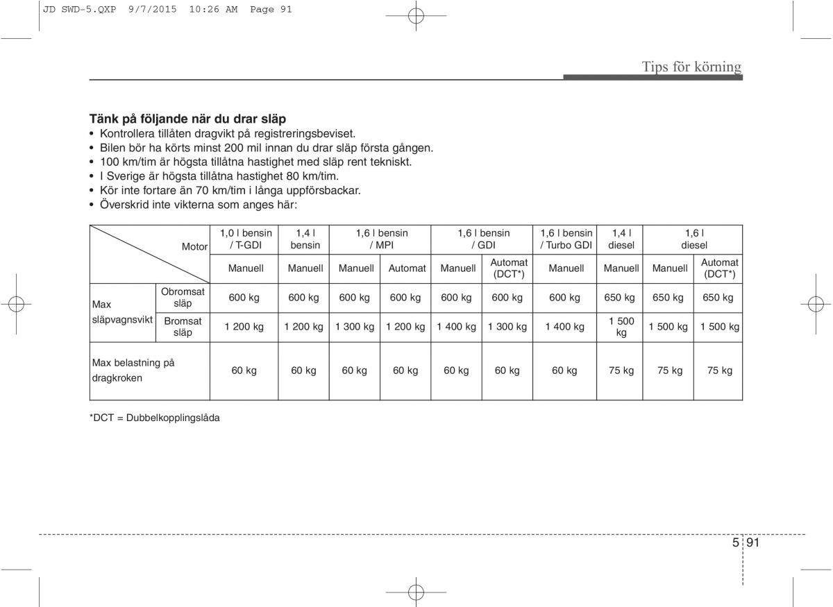 Kontrollera tillåten dragvikt på registreringsbeviset.