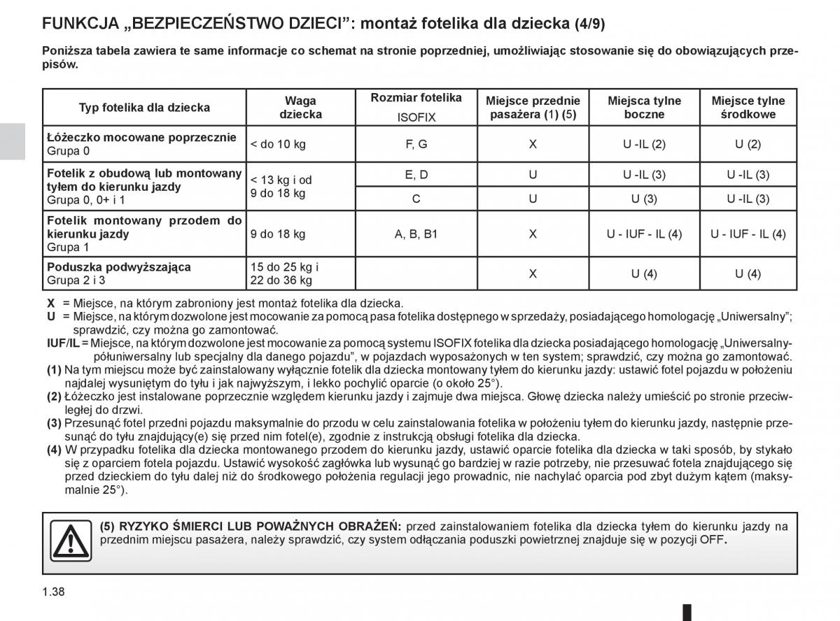 (5) RyZyKO ŚmIERcI LUB POWAŻNycH OBRAŻEń: przed zainstalowaniem fotelika dla dziecka tyłem do kierunku jazdy na