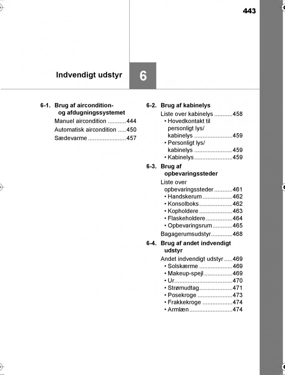 6-1. Brug af aircondition- 6-2. Brug af kabinelys