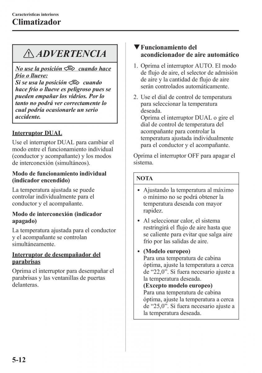 Oprimael interruptor para desempañar el de 22,0. Si fuera necesario ajuste a