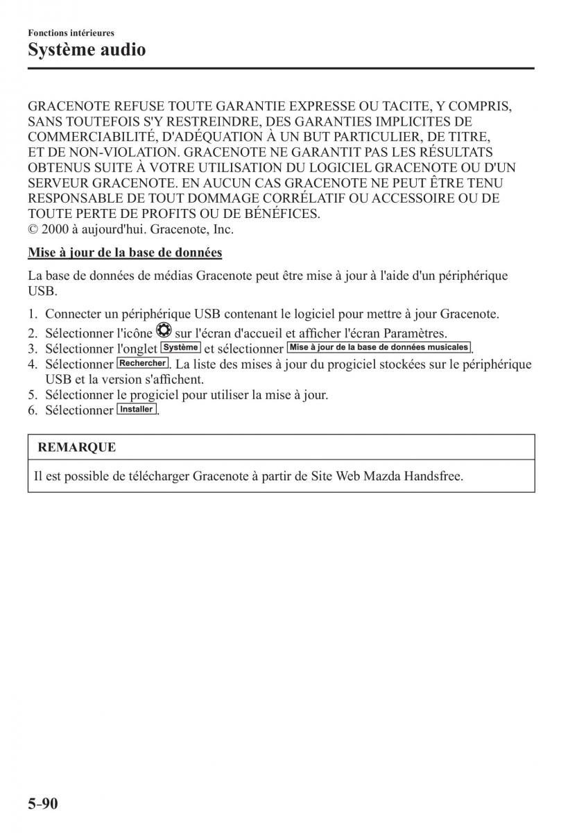 Il est possible de télécharger Gracenote à partir de Site Web Mazda Handsfree.