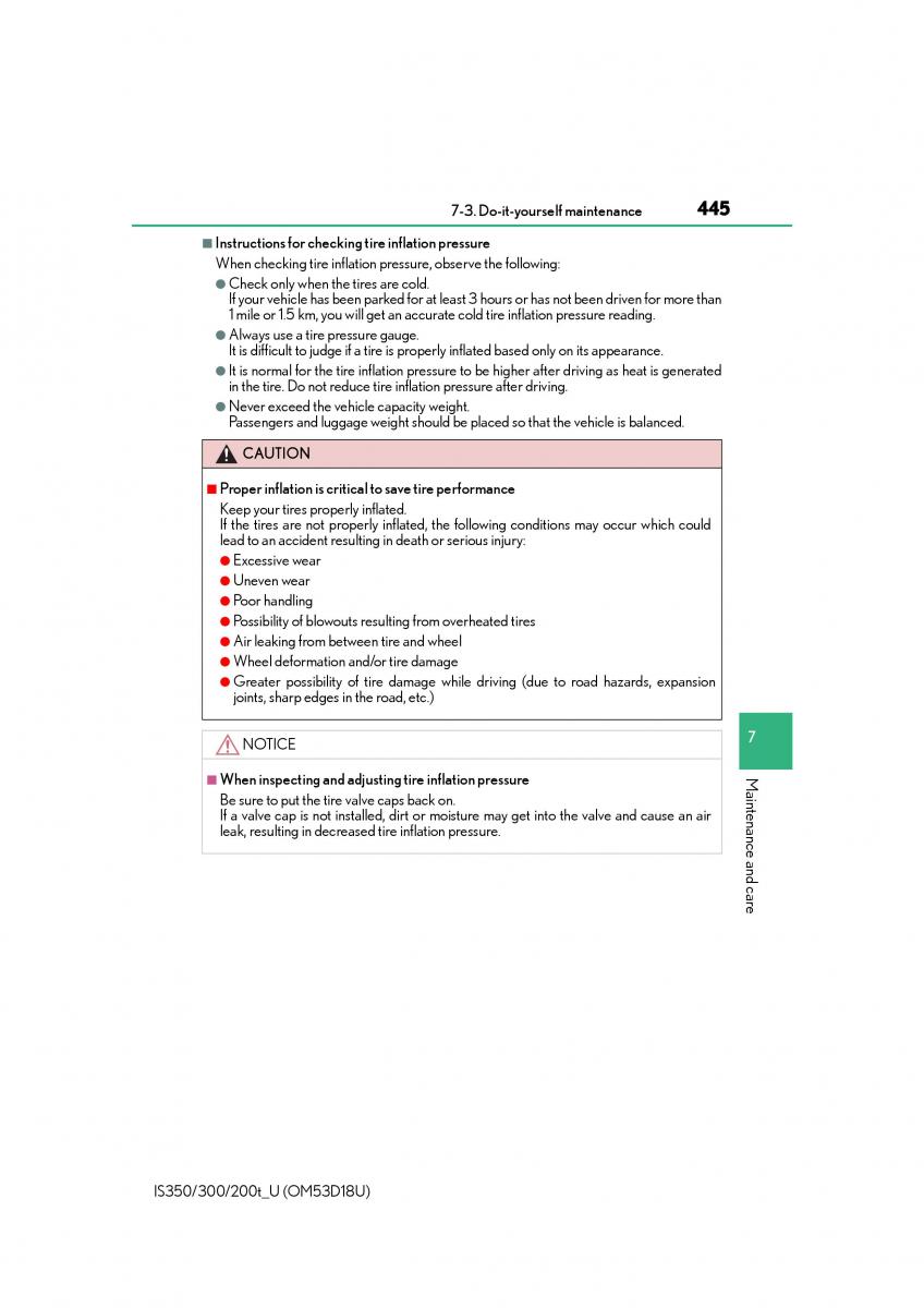 from owners manual to the vehicle Lexus IS, year of production 2013: