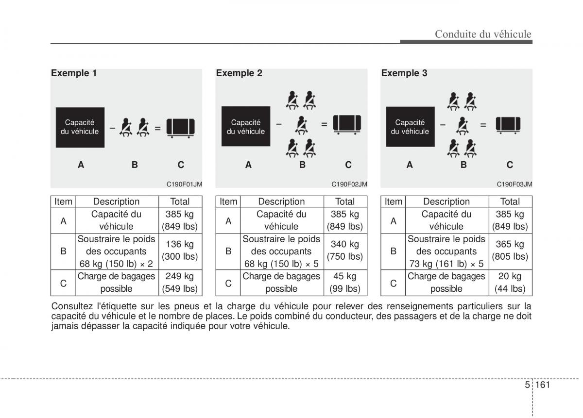 capacité du véhicule et le nombre de places. Le poids combiné du conducteur, des passagers et de la charge ne doit