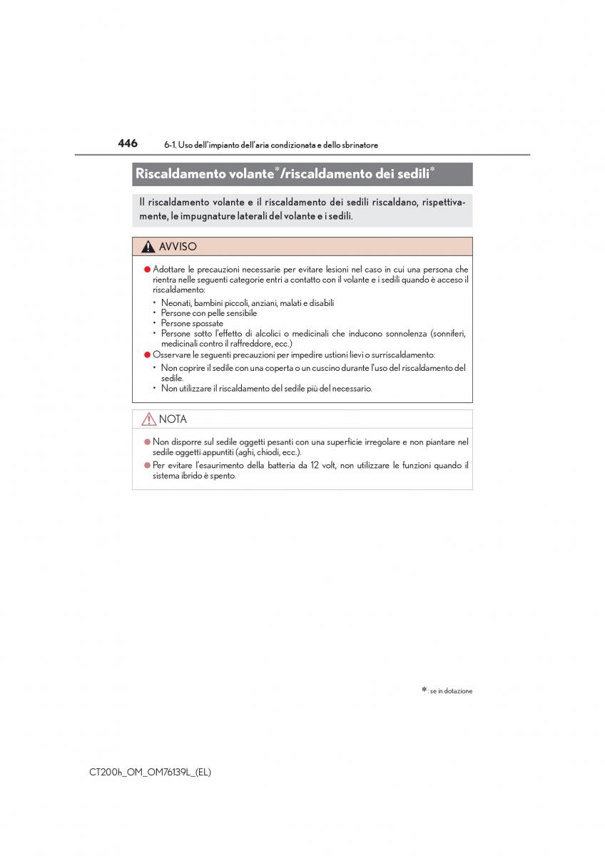 owners manual Lexus CT200h - year of production: 2010 - Lexus CT200h manuale del proprietario IT