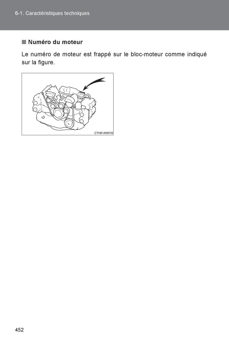 Le numéro de moteur est frappé sur le bloc-moteur comme indiqué
