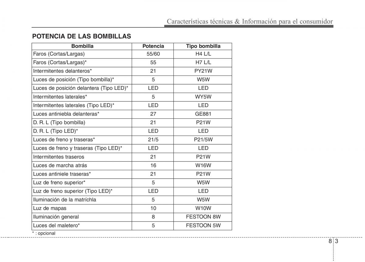 * : opcional