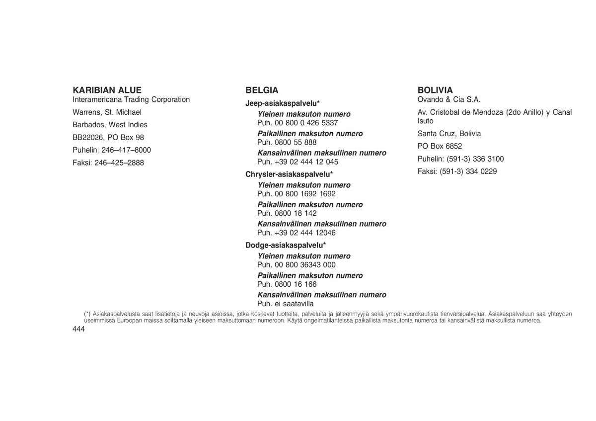 Chrysler-asiakaspalvelu* Faksi: (591-3) 334 0229