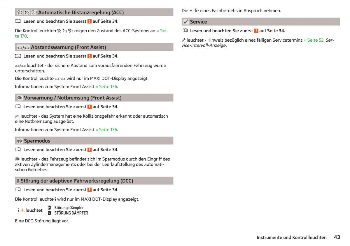 Die Kontrollleuchten zeigen den 6ustand des ACC-Systems an » Sei-Lesen und beachten Sie zuerst auf Seite Ęę.