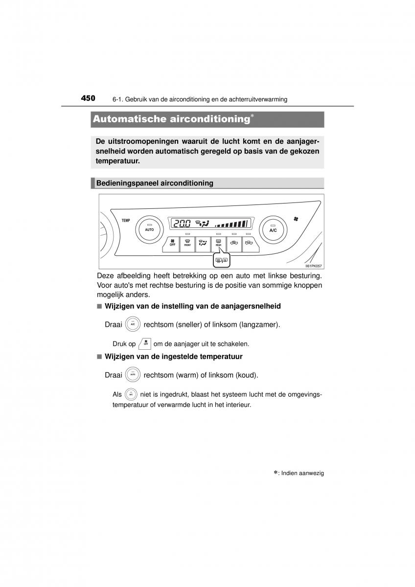 450 6-1. Gebruik van de airconditioning en de achterruitverwarming