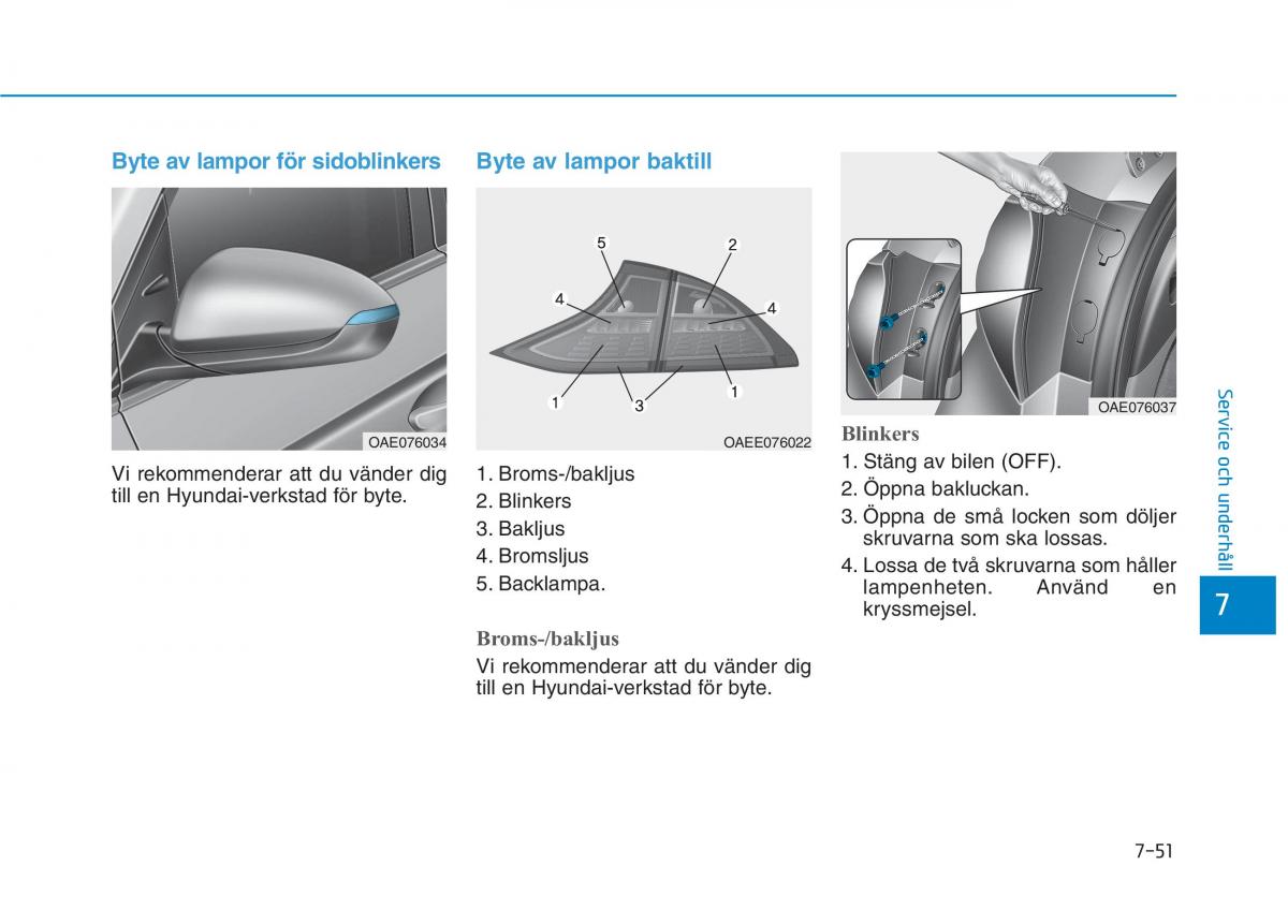 Byte av lampor för sidoblinkers Byte av lampor baktill