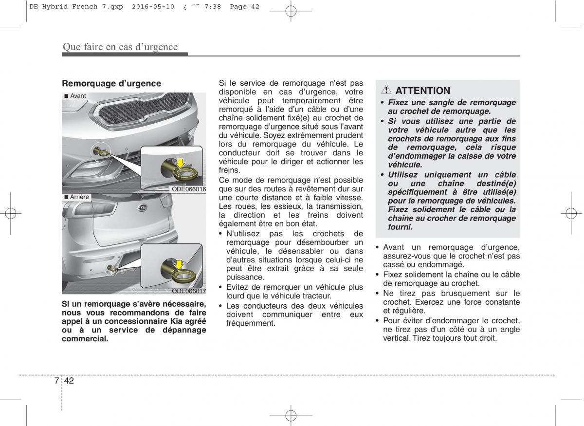 appel à un concessionnaire Kia agréé Pour éviter d’endommager le crochet,