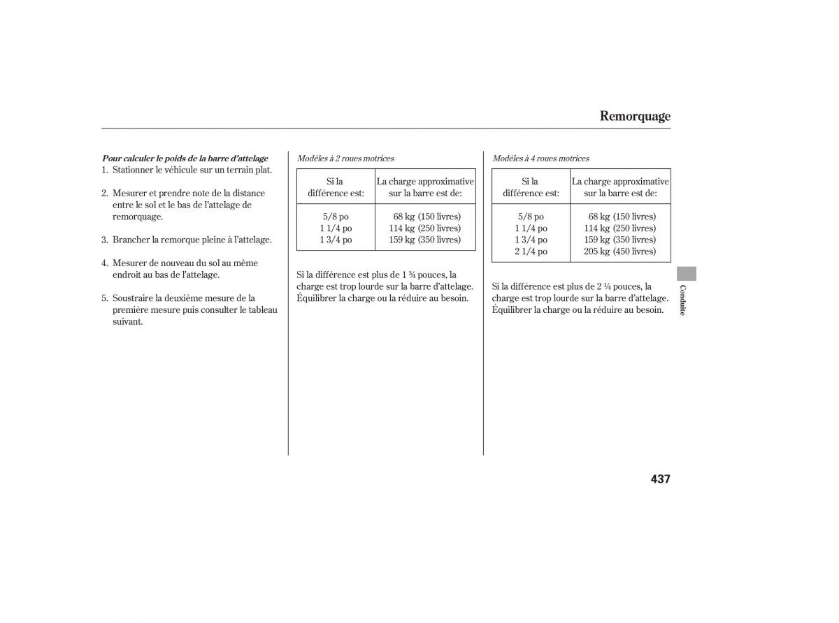 charge est trop lourde sur la barre d’attelage.Si la différence est plus de 2 ¼ pouces, laCo