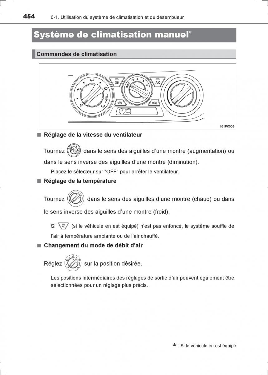 454 6-1. Utilisation du système de climatisation et du désembueur
