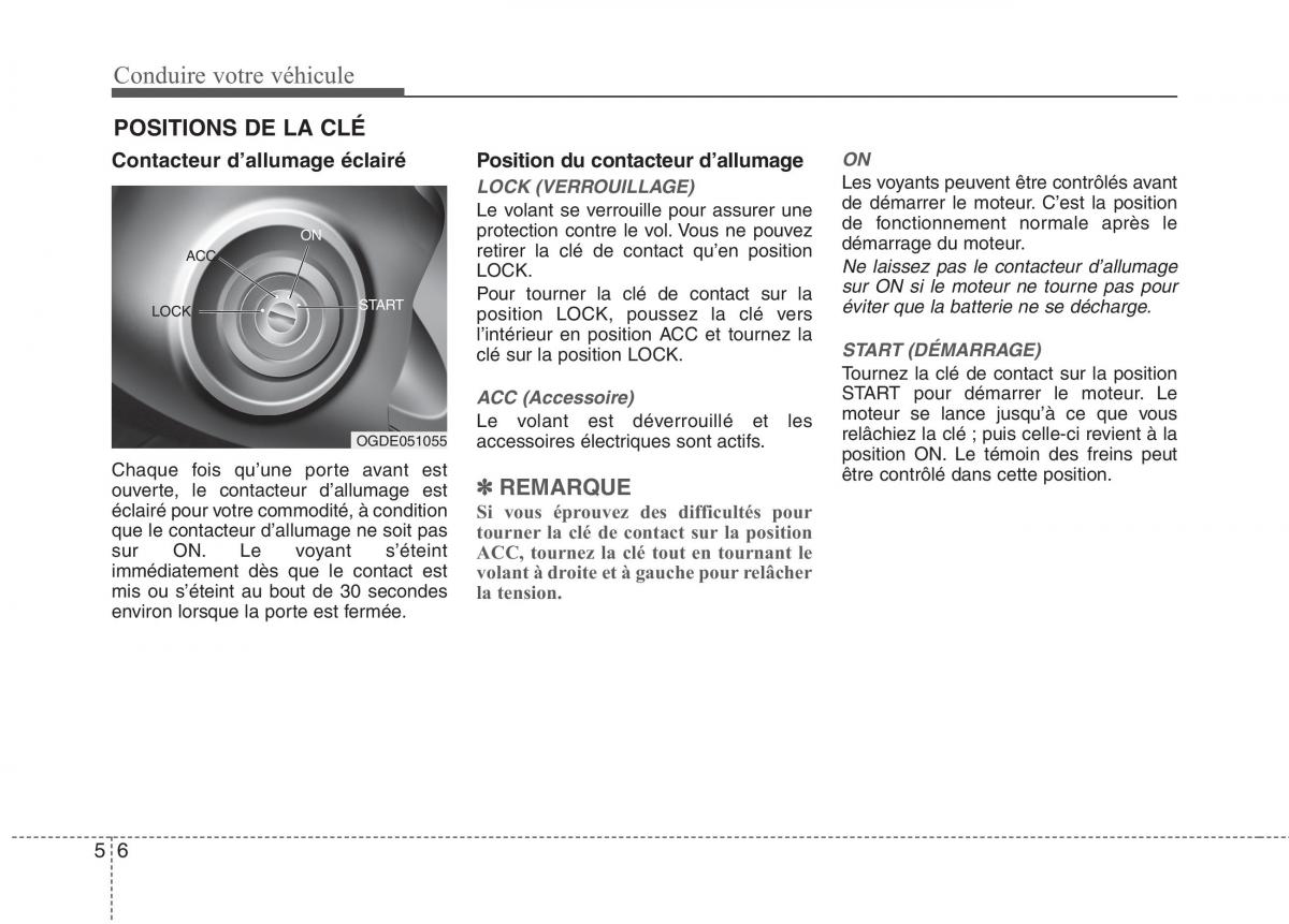 OGDE051055 accessoires électriques sont actifs.relâchiez la clé ; puis celle-ci revient à la