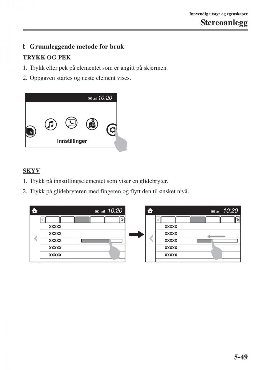 2. Trykk på glidebryteren med fingeren og flytt den til ønsket nivå.
