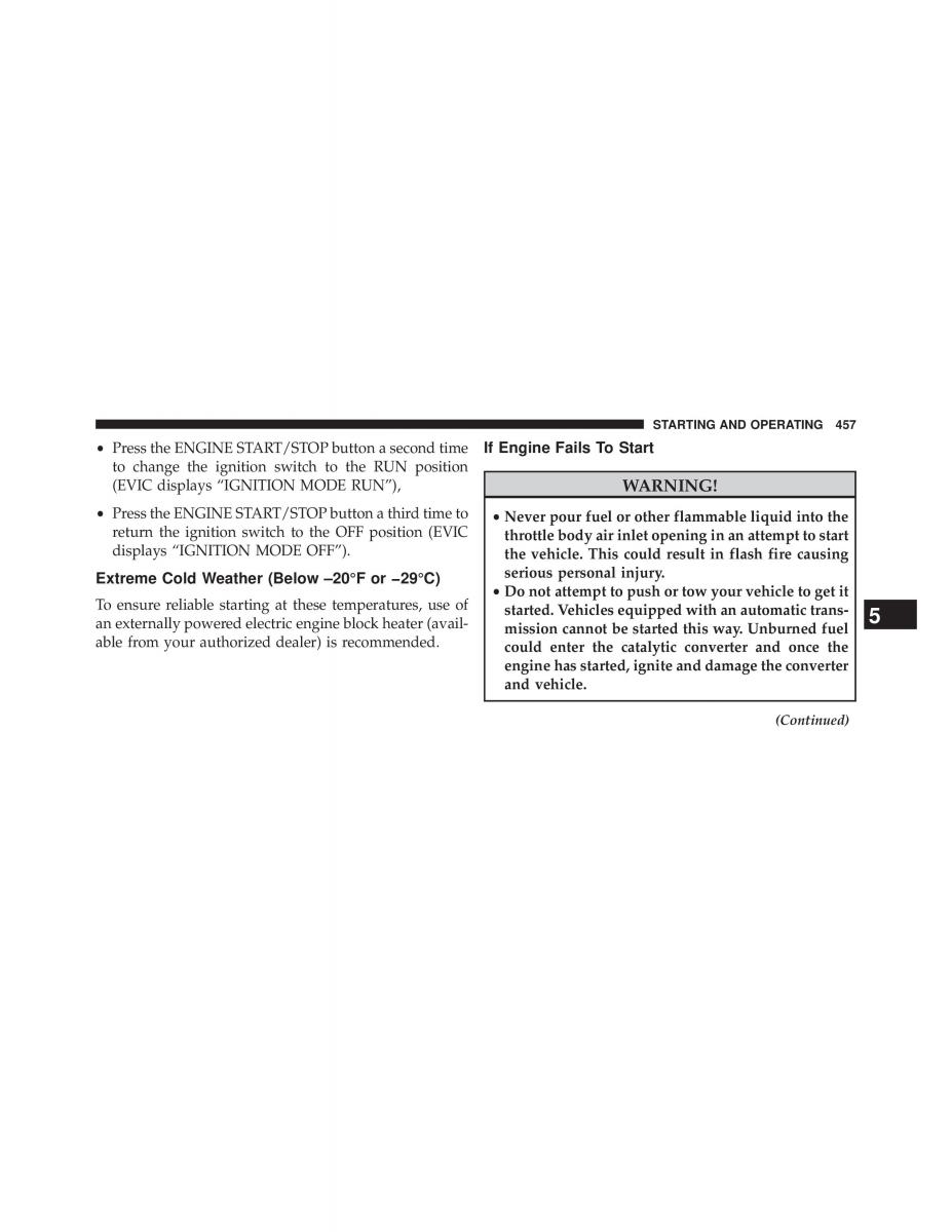 (EVIC displays “IGNITION MODE RUN”), WARNING!