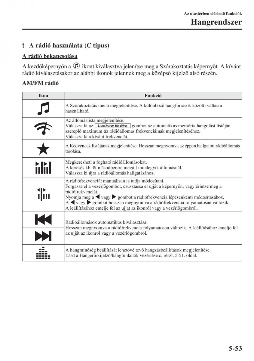 rádió kiválasztásakor az alábbi ikonok jelennek meg a középs Ę kijelzĘ alsó részén.