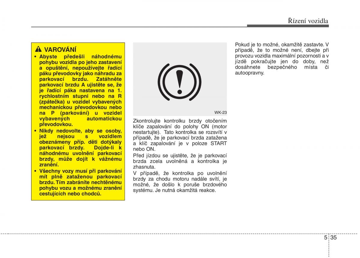 brzdu.Tím zabráníte nechtěnémubrzdy za chodu motoru nadále svítí, je