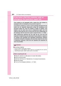 tire puncture repair kit. Contact any authorized Toyota dealer or repairer,