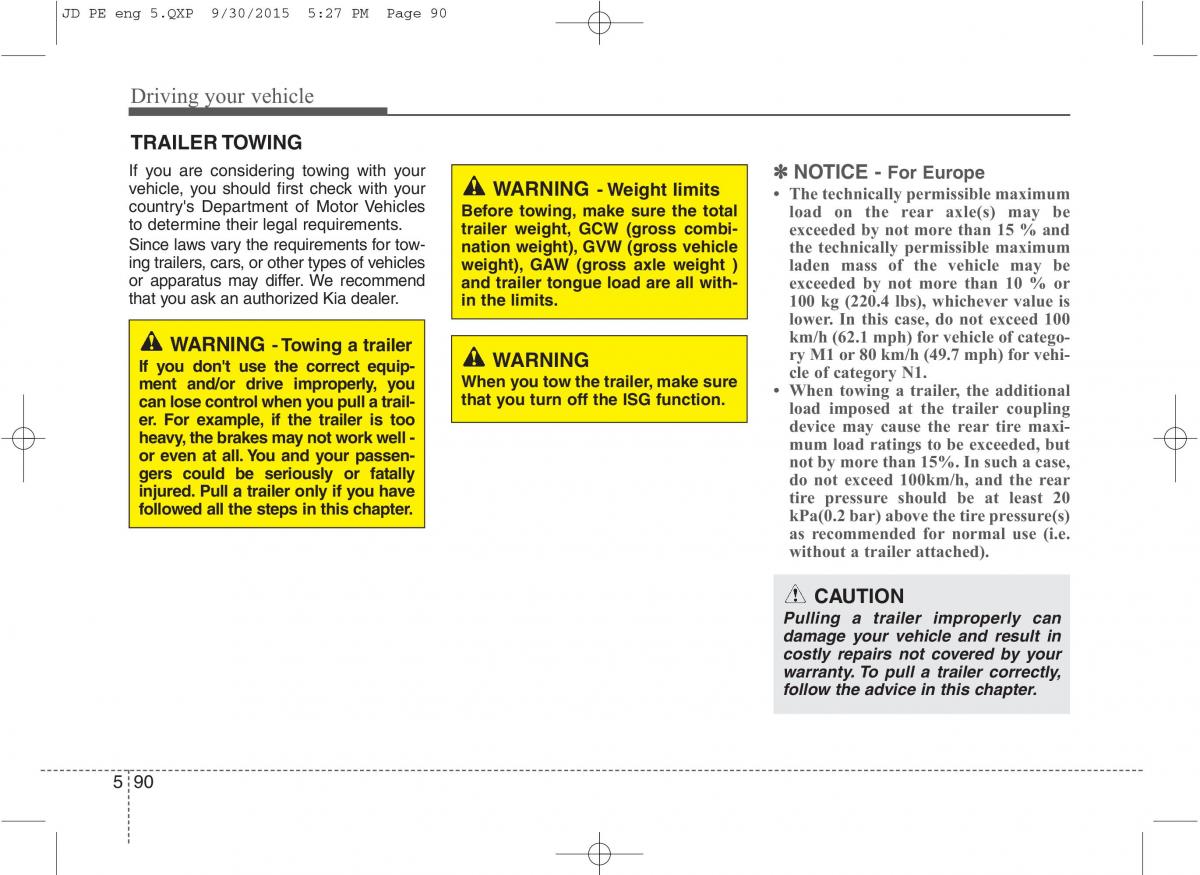 can lose control when you pull a trail-that you turn off the ISG function. When towing a trailer, the additional