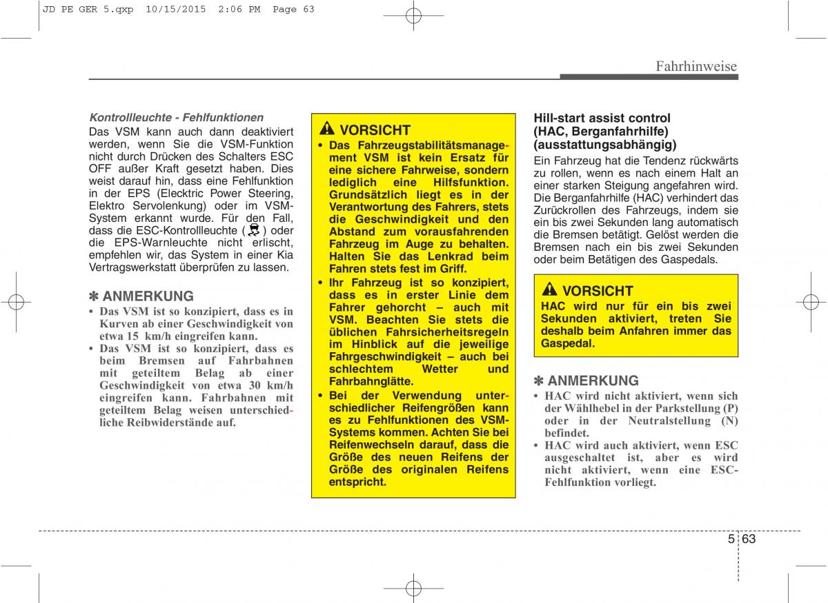 Elektro Servolenkung) oder im VSM- Die Berganfahrhilfe (HAC) verhindert das