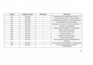 batería. El centro contiene fusibles de cartucho,indica en la siguiente tabla.