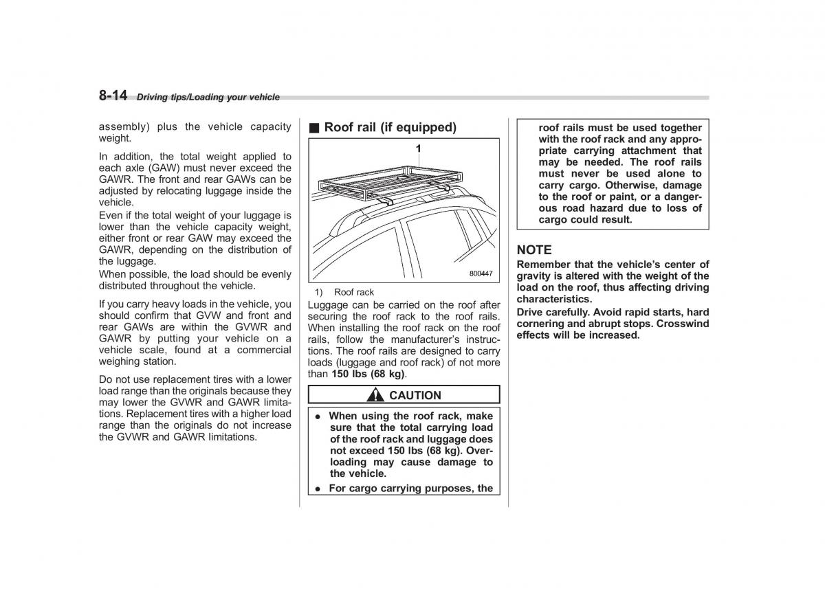 distributed throughout the vehicle.1)Roof rack load on the roof, thus affecting driving