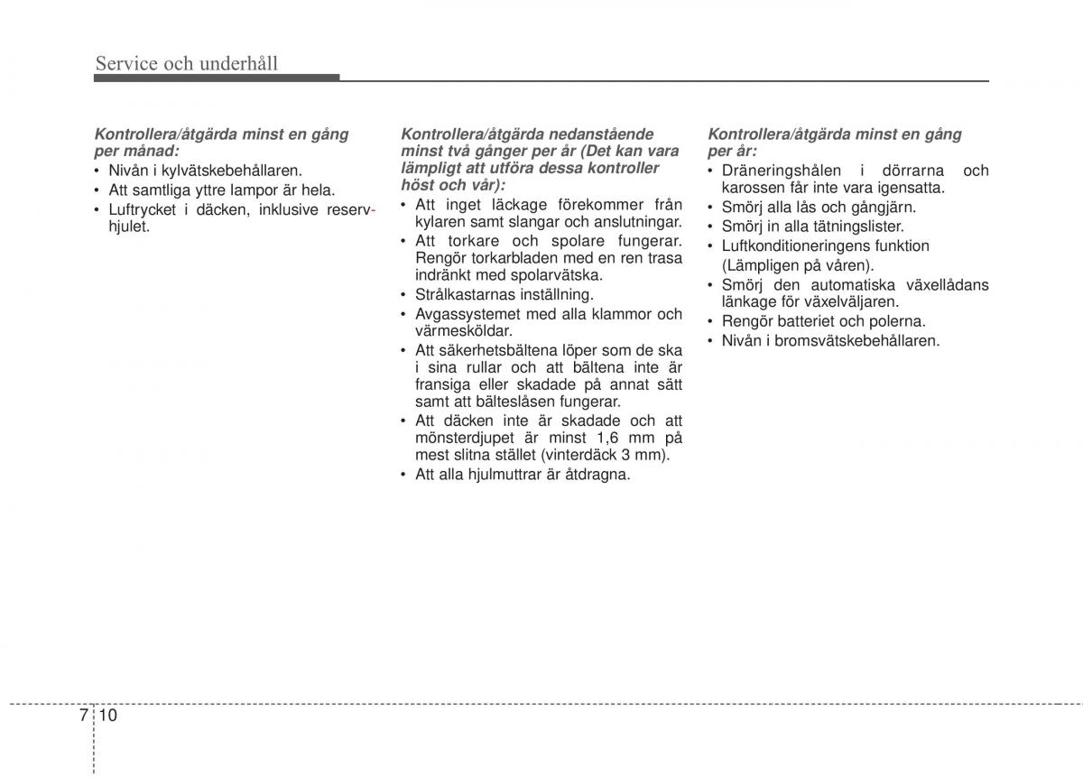 Kontrollera/åtgärda minst en gångKontrollera/åtgärda nedanståendeKontrollera/åtgärda minst en gång