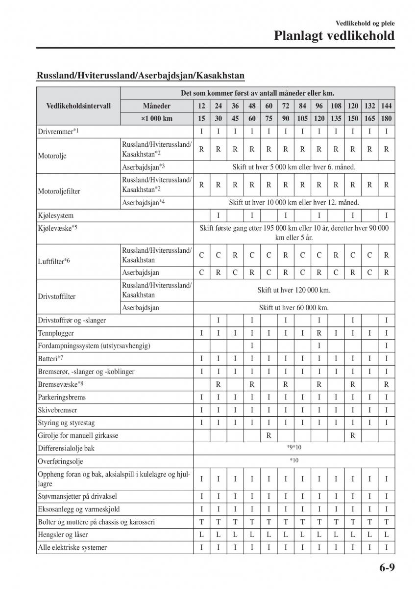 Aserbajdsjan*3 Skift ut hver 5 000 km eller hver 6. måned.