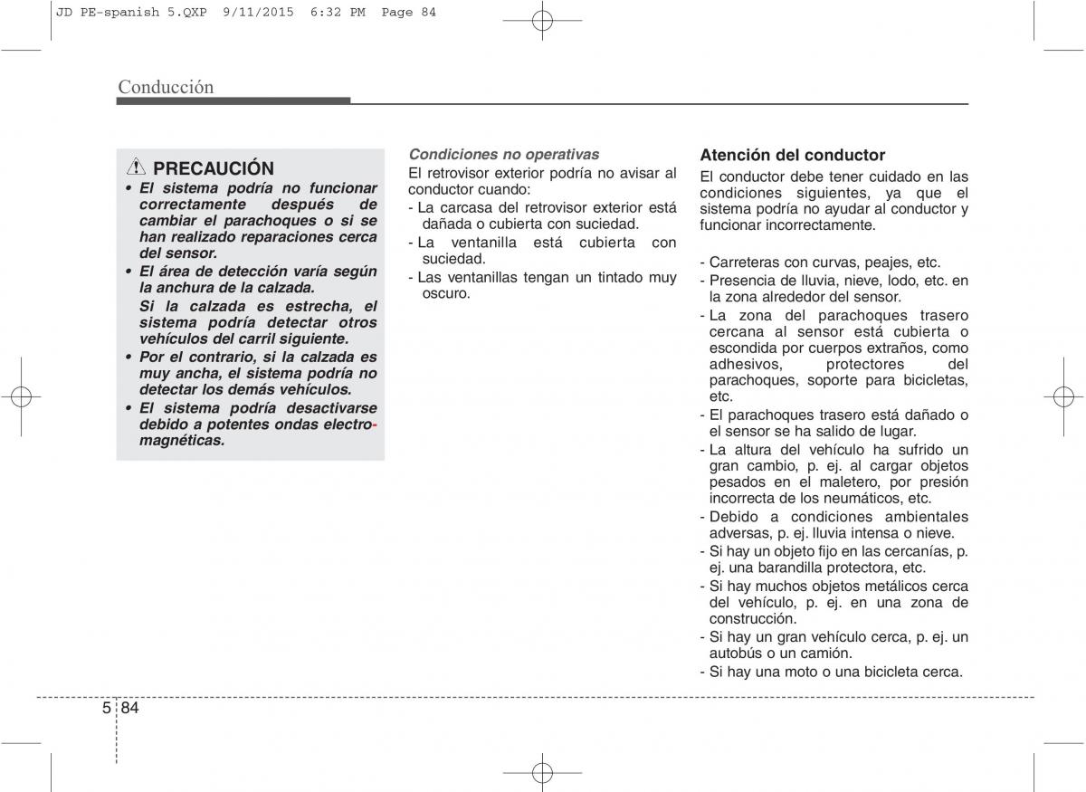 PRECAUCIÓN Condiciones no operativas Atención del conductor