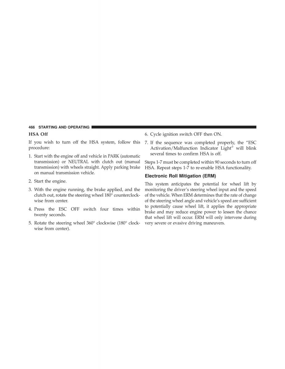 If you wish to turn off the HSA system, follow this7. If the sequence was completed properly, the “ESC