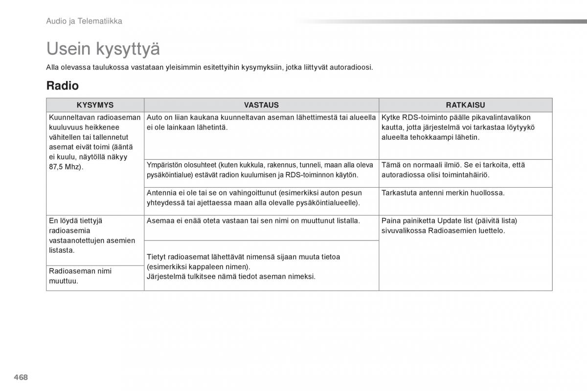 Alla olevassa taulukossa vastataan yleisimmin esitettyihin kysymyksiin, jotka liittyvät autoradioosi.