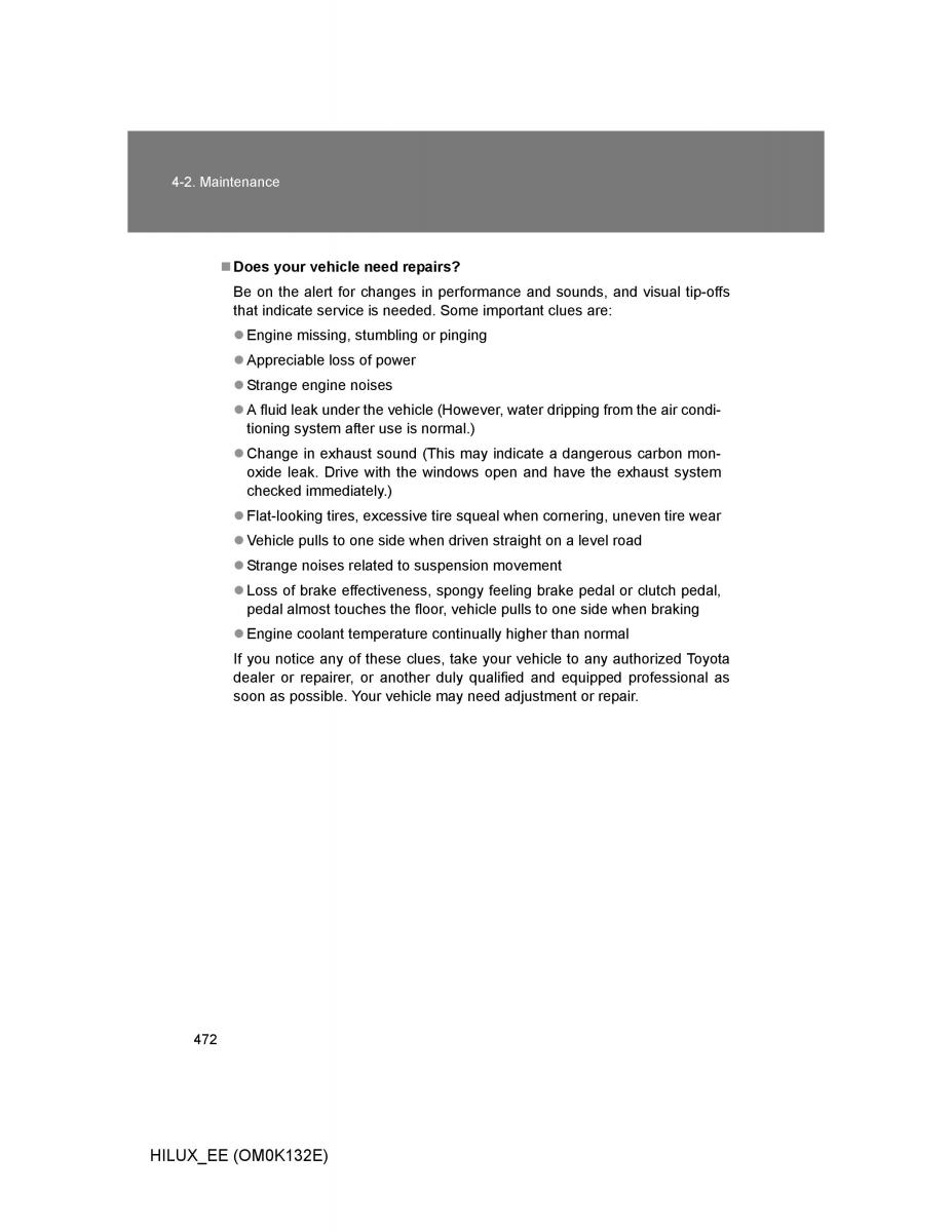 from owners manual to the vehicle Toyota Hilux, year of production 2005 - 2015: