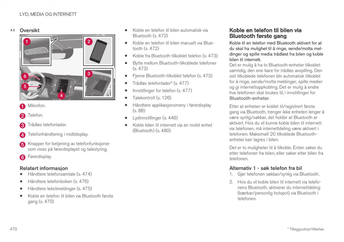 470 * Tilleggsutstyr/tilbehør.