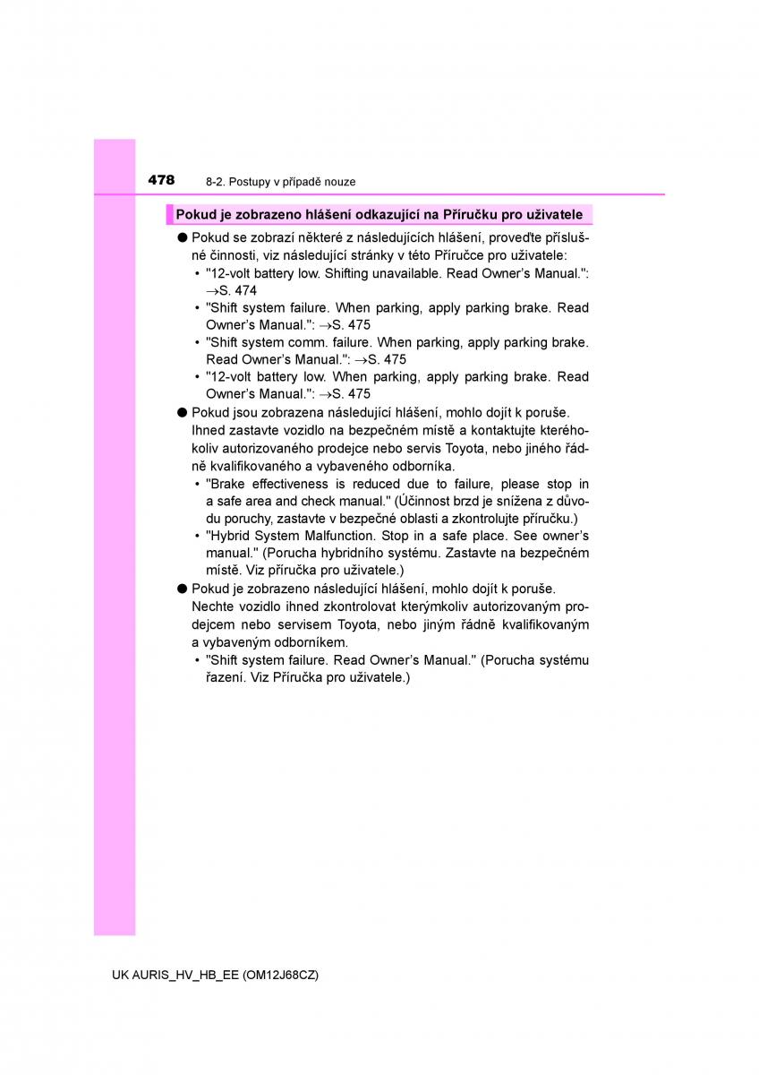 owners manual Toyota Auris Hybrid - year of production: 2013 - Toyota Auris Hybrid II 2 navod k obsludze CZ