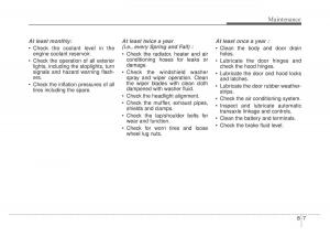 ❑Inspect parking brake ommended.Additives are available from your authorized Kia dealer along with