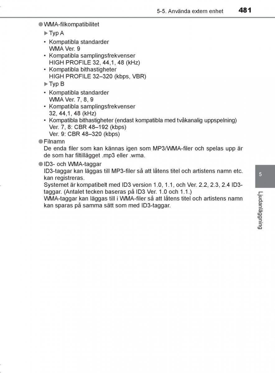 Systemet är kompatibelt med ID3 version 1.0, 1.1, och Ver. 2.2, 2.3, 2.4 ID3-