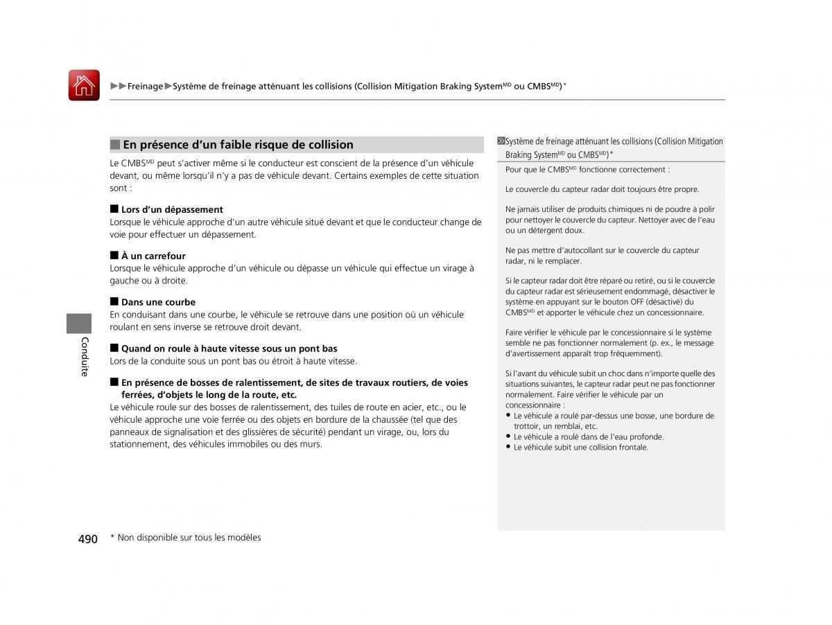 uuFreinageuSystème de freinage atténuant les collisions (Collision Mitigation Braking System ou CMBS )