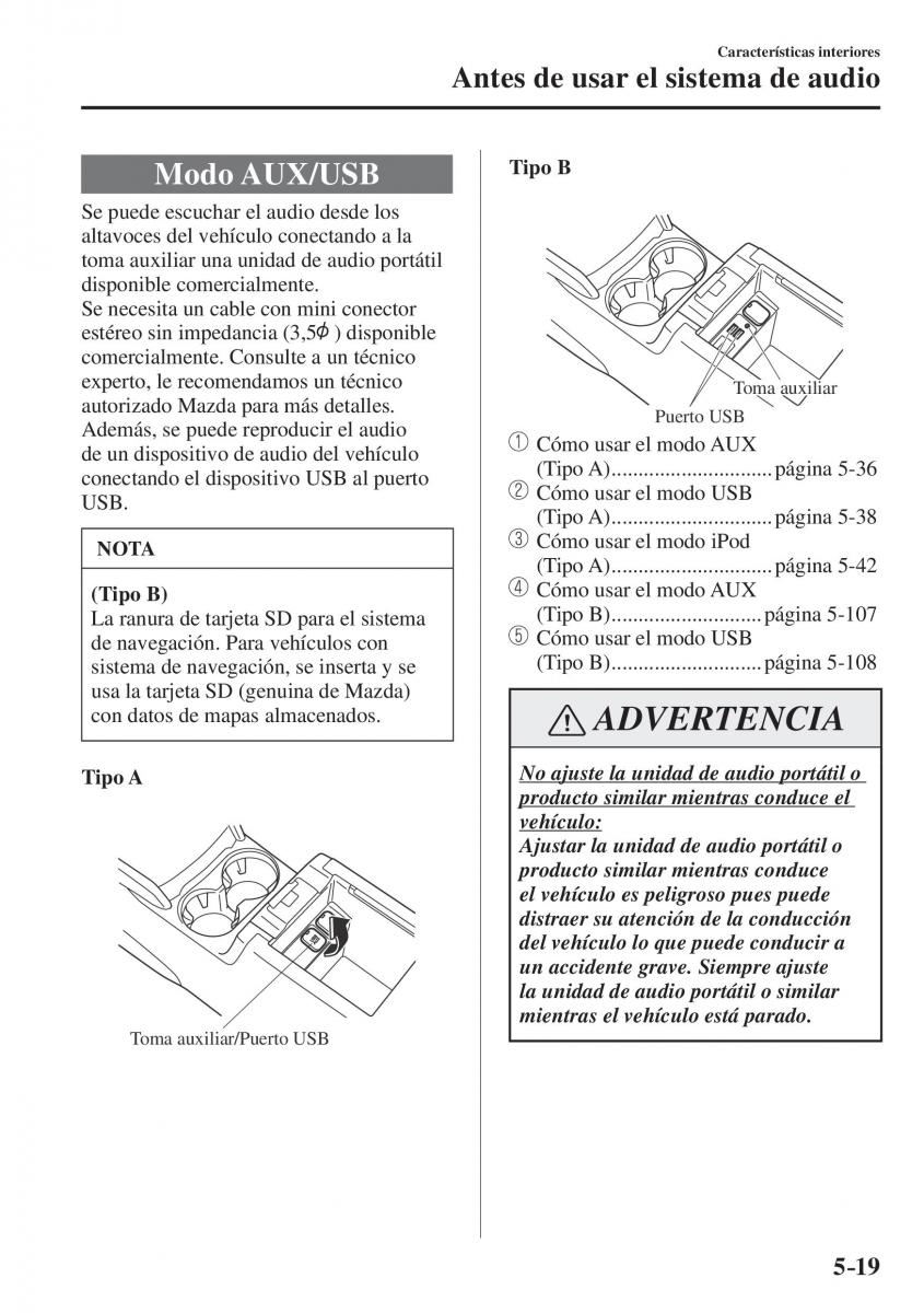 de un dispositivo de audio del vehículo (Tipo A) página 5-36