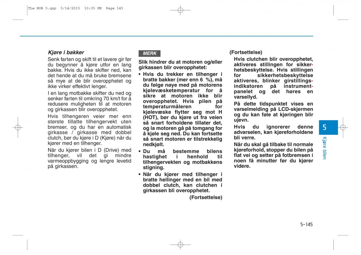 owners manual Hyundai Tucson - year of production: 2015 - Hyundai Tucson III 3 bruksanvisningen NO