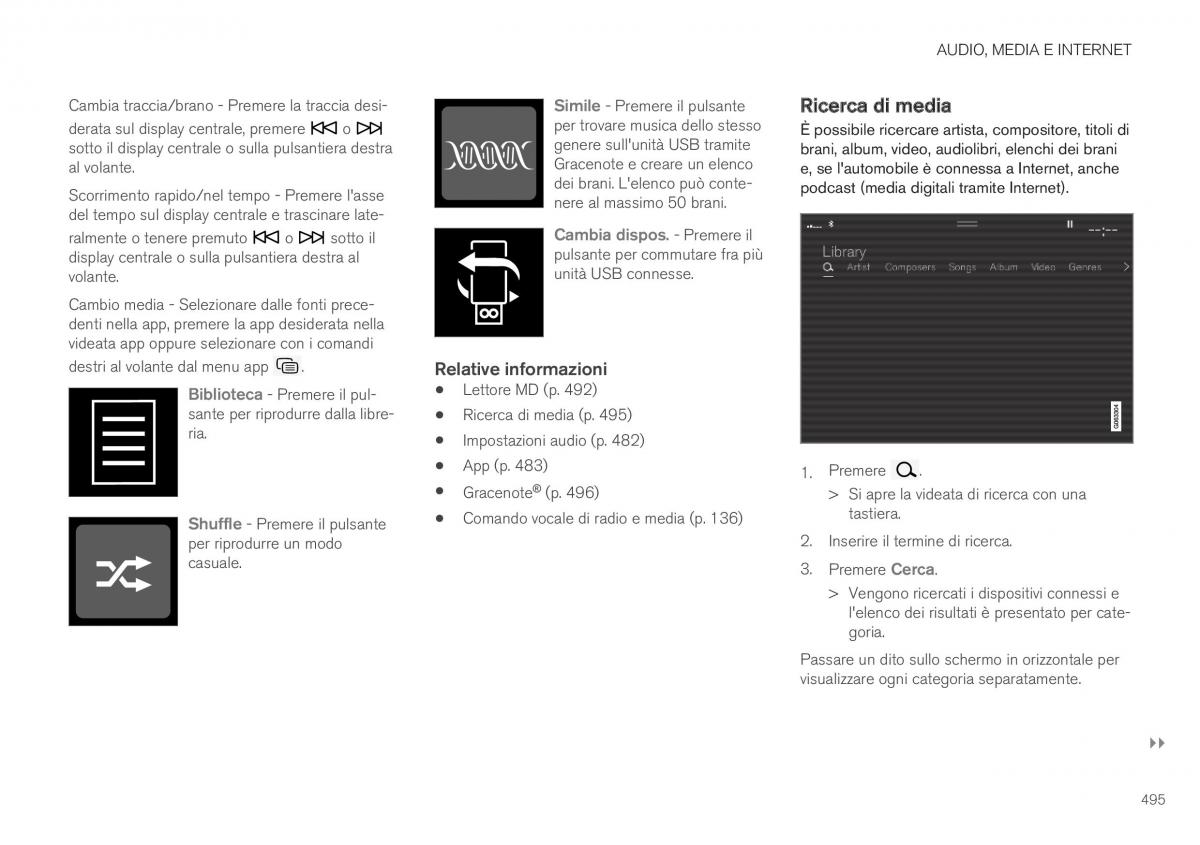 Cambia traccia/brano - Premere la traccia desi- Simile - Premere il pulsante Ricerca di media