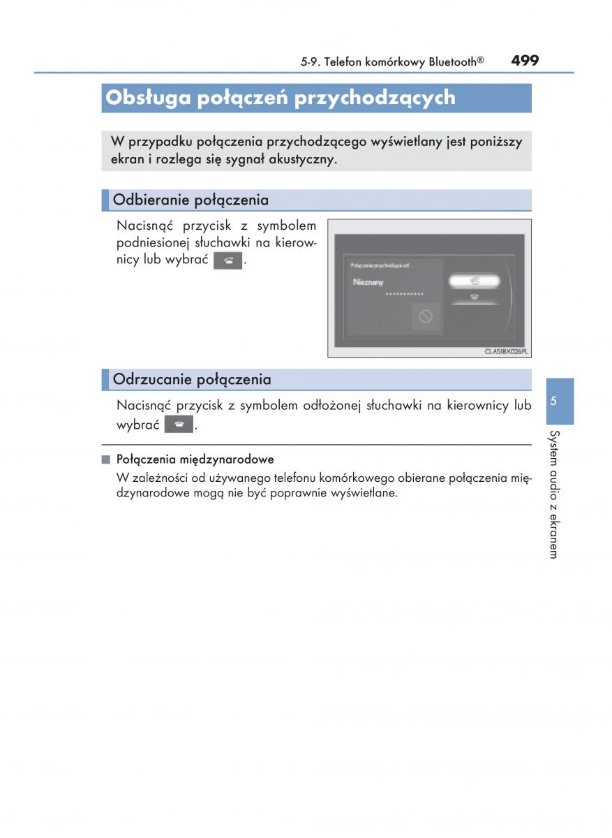 5-9. Telefon komórkowy Bluetooth®499