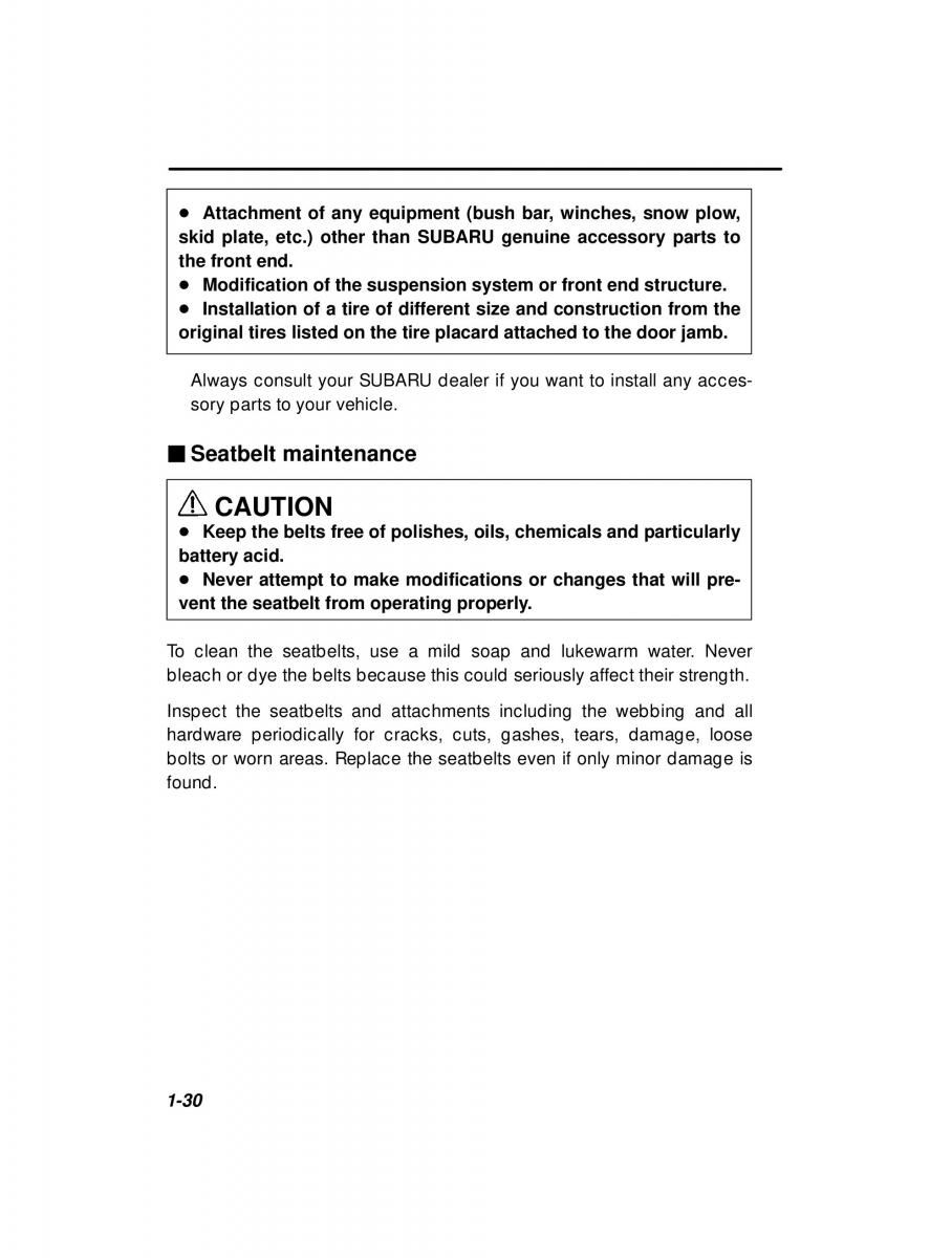 skid plate, etc.) other than SUBARU genuine accessory parts to