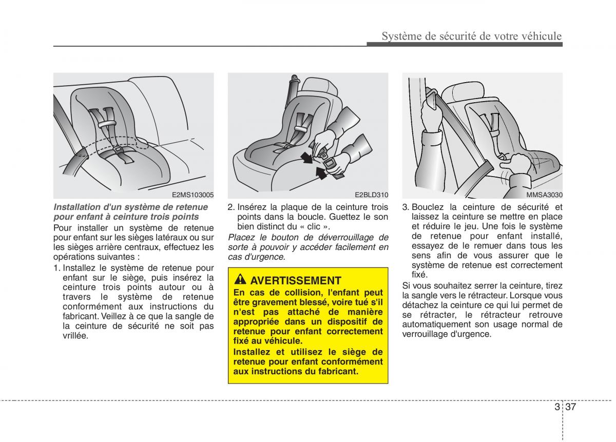 pour enfant à ceinture trois points laissez la ceinture se mettre en place
