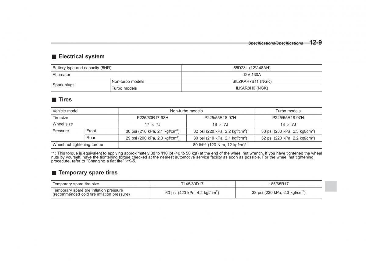 (recommended cold tire inflation pressure) 60 psi (420 kPa, 4.2 kgf/cm ) 33 psi (230 kPa, 2.3 kgf/cm )