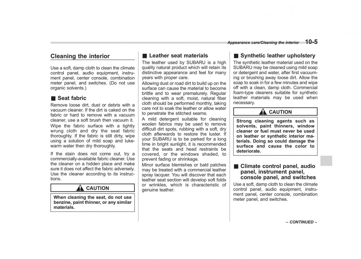 Useasoft,dampclothtocleantheclimatequality natural product which will retain itsSUBARUmaybecleanedusingmildsoap