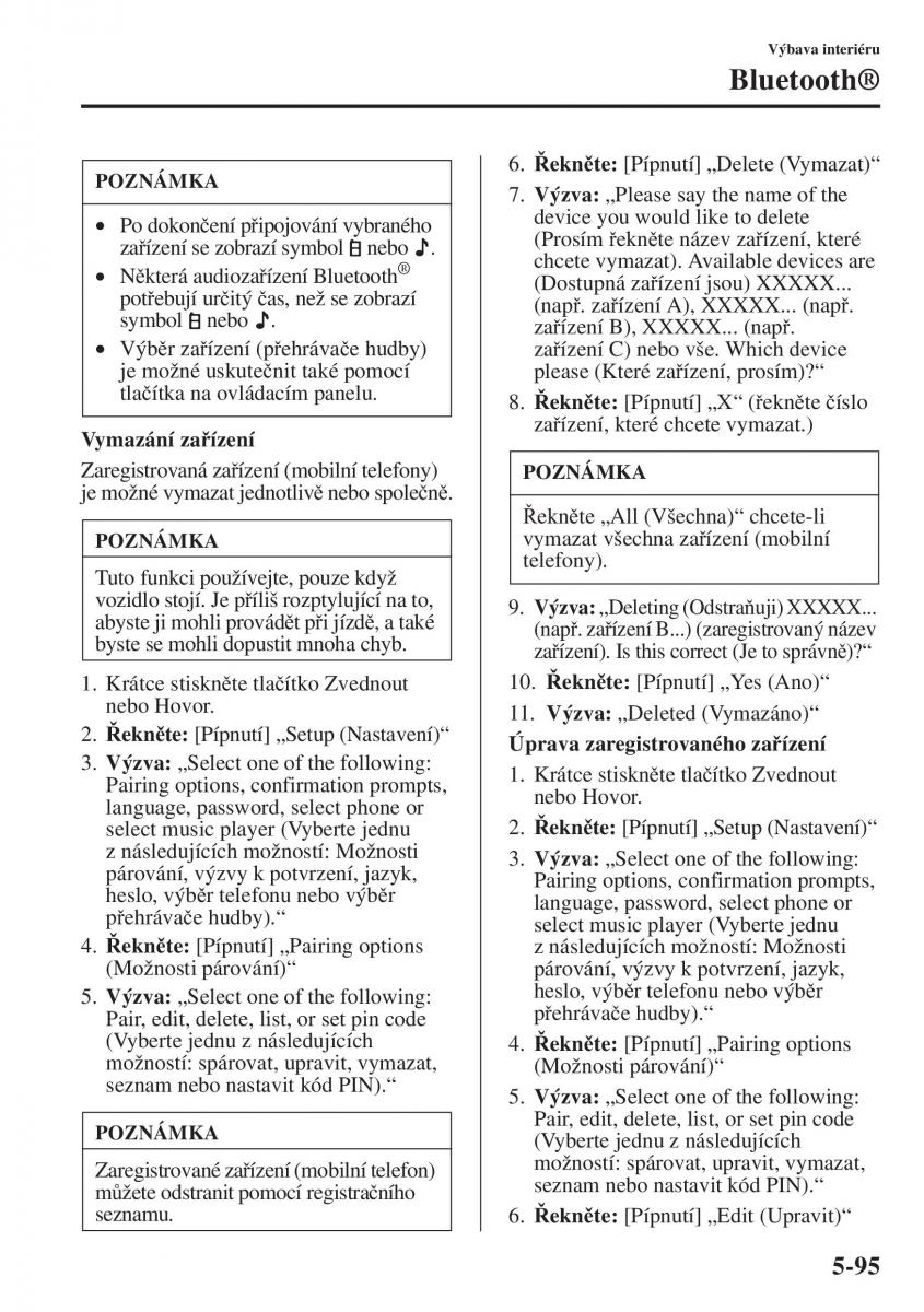 Pair, edit, delete, list, or set pin code pĜ ehrávaþ e hudby).“